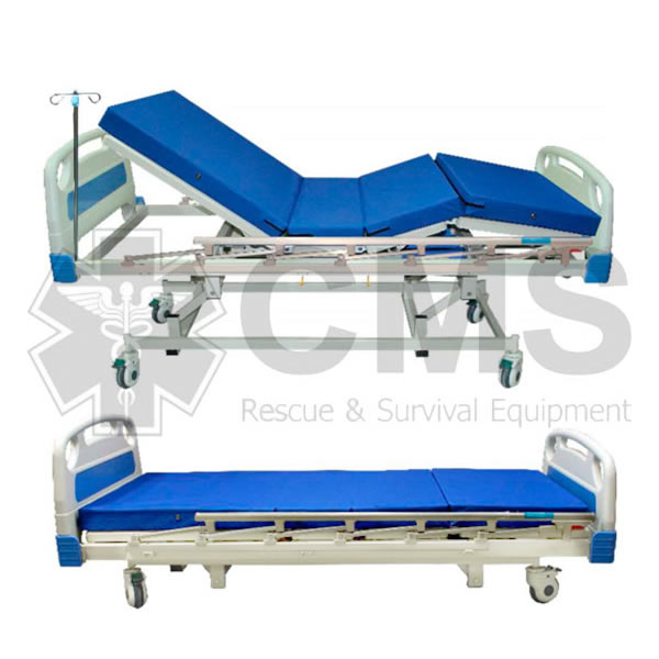 • Sistema de manivela manual de 3 funciones: espaldar, pies, y altura de cama (33 a 67 cm)