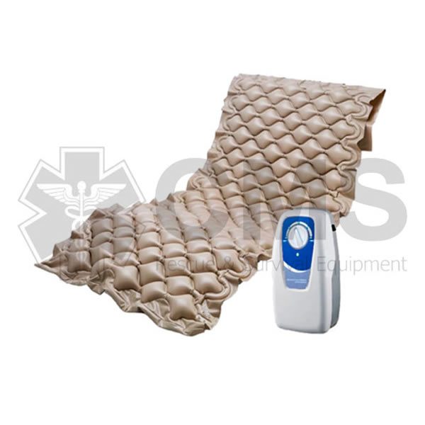 Sistema de alivio de presión alternativa. Empleado como tratamiento para las úlceras por presión. Motor compacto, silencioso, de fácil manejo e instalación, con un sistema de sujeción ajustable a todas las estructuras de camas hospitalarias.